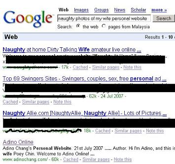 I was looking through my AWStats web analytics today, and I saw someone coming to my blog looking for “naughty photos of my wife personal website“. Go ahead. Google that and see whose website is at position number 4. I can wait.