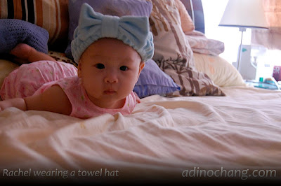 Oooh the first picture of lil’ Rachel in the towel hat is simply too adorable! :p