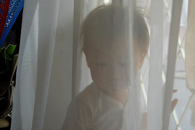 She got lost behind the curtain. I look at this and imagine her wearing a veil.