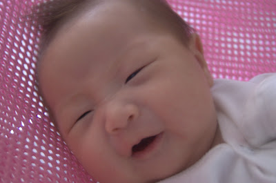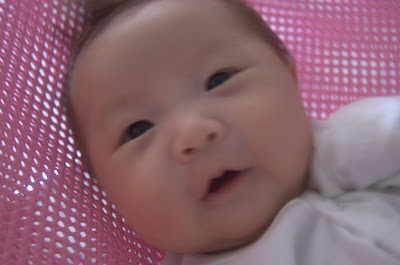Ladies and gentlemen, babies and puppies, presenting the first ever smiley photos of baby Rachel.