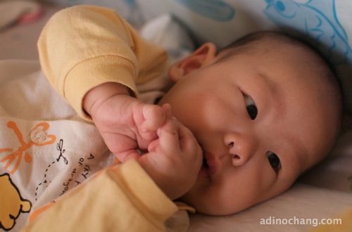 Caleb also likes to suck his thumb and all his fingers.