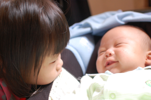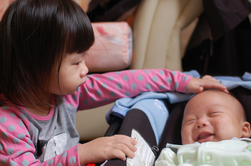 Brother and sister sharing a private joke?